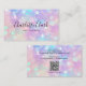 Moderne et tendance, ce carte de visite holographique présente votre nom ou votre nom d'entreprise dans la typographie de script contre un élégant arrière - plan opal de parties scintillant. Il est parfait pour les professionnels dans l'industrie de la beauté et au-delà (notamment le spécialiste des ongles, le technicien des ongles, manicuriste, maquilleur, propriétaire de salon de beauté, coiffeur, esthéticienne, esthéticienne, et plus). Vous pouvez personnaliser l'avant avec votre nom et votre titre (ou adresse/emplacement du site) et ajouter vos coordonnées (y compris l'adresse du site Web et les comptes de médias sociaux), code QR numérisable au verso.