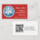 Le carte de visite élégant est doté d'un badge de coiffeur rouge blanc et bleu rétro de style moderne. Customisez avec les détails de barbershop sur l'avant et l'arrière, y compris un code QR personnalisé pour rester connecté avec les clients.