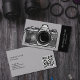 Dessin de caméra aquarelle dessinée à la main, pour votre entreprise de photographie. Ajouter votre code QR