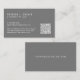 Carte de visite professionnel gris minimaliste et élégant avec votre nom, titre et coordonnées (e.mail, numéros de téléphone, nom de l'entreprise et adresse postale) en lettres blanches propres, simples et modernes. Entrez l'adresse d'un site Web pour créer un code QR numérisable lié au site Web de votre entreprise, à des profils de médias sociaux ou à une autre plate-forme qui présente votre travail, ce qui permet à d'autres d'explorer facilement votre expertise. Au verso, personnalisez le texte supplémentaire ou laissez vide.