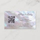 Cette carte de visite de luxe élégante présente un design nacré iridescent et un script manuscrit élégant. Au verso figure un code QR scannable et un modèle personnalisé pour le nom, l'adresse et les réseaux sociaux. Cette carte de visite glamour professionnelle est parfaite pour les salons, les artistes maquilleurs, les bijouteries et plus encore.