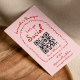 Carte De Visite Code QR rétro rouge rose manuscrit fille Whimsical