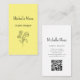 Code QR carte de visite jaune fleuri, avec un design simple marguerite. Avec le lettrage personnalisable, vous pouvez ajouter vos propres informations. Vous ajoutez votre site Web au champ de code QR pour que vos clients puissent l'analyser. Idéal pour promouvoir votre entreprise de design avec un style élégant.