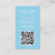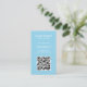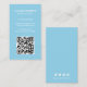 Carte de visite vertical moderne avec un style simple et minimaliste avec votre QR Code sur le devant et les icônes de médias sociaux sur le dos. Tous les éléments de conception sont en blanc sur un arrière - plan bleu clair. Un design simple et minimal qui peut être customisé pour n'importe quel professionnel d'affaires.