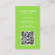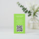 Carte de visite vertical moderne avec un style simple et minimaliste avec votre QR Code sur le devant et les icônes de médias sociaux sur le dos. Tous les éléments de conception sont en blanc sur un arrière - plan vert citron. Un design simple et minimal qui peut être customisé pour n'importe quel professionnel d'affaires.