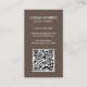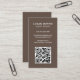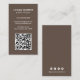 Carte de visite vertical moderne avec un style simple et minimaliste avec votre QR Code sur le devant et les icônes de médias sociaux sur le dos. Tous les éléments design sont en blanc sur un arrière - plan marron. Un design simple et minimal qui peut être customisé pour n'importe quel professionnel d'affaires.