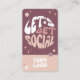 Connectez-vous avec vos clients avec ce carte de visite de médias sociaux super avec le code QR. Doté de polices rétro et d'un design typographique moderne, qui dit 'Lets Get Social' et Scan QR Code'. L'arrière - plan présente des fleurs subtiles et des motifs scintillants dans des couleurs pastel avec de l'espace pour un grand code QR scannable. Vous pouvez utiliser ces cartes de médias sociaux pour instagram, tiktok, facebook ou tout autre type d'URL.