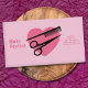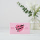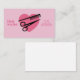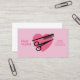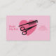 Une simple carte de visite de coiffeur dans des tons roses avec une paire de ciseaux et un peigne sur un cœur rose. Parfait pour un salon de coiffure ou un barbier.