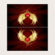 Coeur rouge vif d'un ange aux ailes dorées brillant dans l'arrière - plan rouge foncé et rayonnant décoré d'un motif.