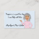 Cet carte de visite a mon joli dessin d'une dame aux cheveux vraiment bouclés. Elle porte un chapeau rose qui ressemble à un fumier d'esthéticienne ou de coiffeuse.