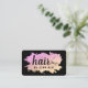 carte de visite moderne avec dégradé de faux or & texture violette, ciseaux, arrière - plan noir et élégante police calligraphie.