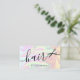 Superbe carte de visite de coiffure avec une texture imitation holographique colorée et une police calligraphique élégante.
