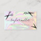 Superbe carte de visite de coiffure avec une texture imitation holographique colorée et une police calligraphique élégante.