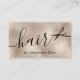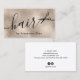 Ce design carte de visite de coiffure moderne présente une texture d'or en faux cuivre, des ciseaux et une police calligraphique élégante.