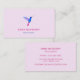 Carte de visite rose pour les amateurs de colibris avec un petit colibri bleu en vol. La police, la taille et la couleur de police peuvent être modifiées en cliquant sur "Customiser plus loin".