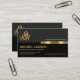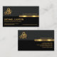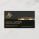 Au-dessus, le même thème de design est utilisé avec le logo or et votre prestigieux nom au sommet. La colonne noire en dessous contient les coordonnées et une légende de slogan. Toutes les lettres pour cette carte sont en faux or.
