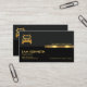 Un design simple, gris et noir à colonnes. Ceci est accentué par une fausse bande dorée près du centre de la carte qui a le nom de l'entreprise. Un logo de semi-camion en or que vous pouvez utiliser est situé dans la direction opposée. Vous trouverez ci-dessous votre nom prestigieux, votre titre de poste et vos coordonnées. Un slogan pour annoncer vos services est disponible dans le coin inférieur droit.