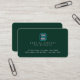 Elegant dark green contact card with fields for logo, name, profession and address printed at front side...
