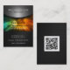 Carte de visite de pointe coloré personnalisable professionnel avec les détails métalliques de regard et les rayons spectraux. Regard grave et élégant. N'oubliez pas d'enlever le code de l'échantillon QR du dos de la carte si vous n'ajoutez pas le vôtre !
