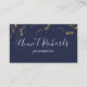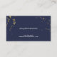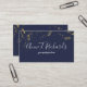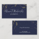 Parties scintillant plaquée (pas de parties scintillant réelle, juste une image de petits points de couleur or/ocher) avec son nom imprimé dans un style manuscrit, avec profession et informations de contact supplémentaires sur carte de visite bleu marine