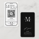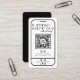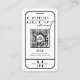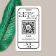 Connectez-vous avec vos clients avec un carte de visite de médias sociaux moderne. Cette carte de code QR minimaliste en noir et blanc dispose d'une grande icône de téléphone mobile, code URL au milieu et espace pour vos détails d'affaires. Les polices de script et l'effet de lettre découpée ajoutent un détail supplémentaire à cette conception de carte de société. Cette numérisation avec un design de téléphone fait de ce lien QR cartes de médias sociaux personnalisées vraiment se démarquer.