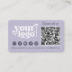Vous cherchez un moyen d'amener vos clients à s'engager avec vos socials et votre site web ? Découvrez ce lien avec les médias sociaux américains QR Code Lavender Carte de visite. Vous pouvez facilement ajouter un QR personnalisé avec un lien vers votre site Web. Vous n'avez qu'à remplir l'URL de votre site web et un code QR sera généré automatiquement. Pour votre gestionnaire de médias sociaux : vous pouvez supprimer les icônes dont vous n'avez pas besoin très facilement dans l'outil de conception. Cliquez sur le bouton du message si vous avez besoin d'aide. Heureux Branding !
