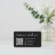 Facilitez la recherche de vos clients en ligne avec une carte de visite noire élégante comportant votre code QR de site Web et des icônes de réseaux sociaux. Personnalisable et professionnel.