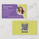 Ce design comprend une connexion avec nous avec le code QR modèle de carte de visite avec ajouter votre propre photo de logo, pour le modèle professionnel d'entreprise, avec les médias sociaux Facebook Instagram icons, et un style contemporain simple minimaliste, avec le site Web URL d'adresse Web, un design de typographie simple moderne, un design élégant de base, idéal pour les petites entreprises boutique magasin, avec un modèle couleur violet lilas lime vert