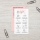 Assurez-vous que vos clients savent comment prendre soin de leurs lèvres après un traitement semi-permanent de tatouage de lèvres avec un carte de visite personnalisé de post-traitement de la lèvre blush. Ce tatouage à lèvres féminin et la carte d'instructions de soin de contour comprennent des icônes de soin pour chaque étape, une police de script moderne et de l'espace pour vos détails d'affaires. Cette carte de guide de soins à lèvres rose et blanc est l'ajout parfait à votre design esthétique de papeterie salon.