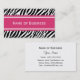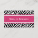 Carte De Visite Contact rose et noir moderne de rayures de zèbre