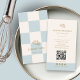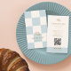 Carte De Visite Cool Blue Checkered Cafe Croissant QR Bakery