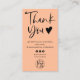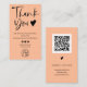 Un cool simple et minimaliste noir et pêche ordre d'affaires merci logo disposition verticale. Ajoutez vos médias sociaux. Avec une police de script de signature moderne, toutes les couleurs sont modifiables, ajoutez votre logo et votre code QR.