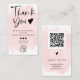 Un cool simple et minimaliste noir et blanc ordre d'affaires merci logo mise en page verticale sur l'abstraite aquarelle rose broke. Ajoutez vos médias sociaux. Avec une police de script de signature moderne, toutes les couleurs sont modifiables, ajoutez votre logo et votre code QR.