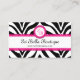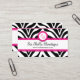 Carte De Visite Copie de zèbre et monogramme rose de dentelle