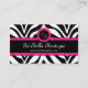 Carte De Visite Copie de zèbre et monogramme rose de dentelle