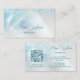 Cette élégante carte de visite de luxe est décorée dans un style nacré bleu turquoise et irisé et présente un élégant script manuscrit. À l'envers, il y a un code qr scannable et un modèle personnalisé pour le nom, l'adresse et les relations sociales. Ce carte de visite glamour professionnel est parfait pour les salons, les maquilleurs, les bijoux et plus encore.