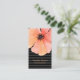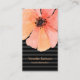 Moderne, élégant, chic, carte de visite vertical réalisé en noir sur motif rayé noir, avec des graphiques en aquarelle d'une seule fleur de pavot de corail. Personnalisez tout le texte pour répondre à vos besoins professionnels. Idéal pour toute occupation.