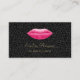 Ce carte de visite glamour pour le cosmétologiste certifié dispose d'une paire de lèvres roses chaudes glamour contre un arrière - plan empreinte de léopard noir. Personnalisez en ajoutant votre nom, votre titre et vos coordonnées. Parfait pour les professionnels du maquillage ou les professionnels de la cosmétologie.