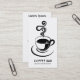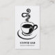 Un carte de visite attrayant avec une tasse de café chaude. Nom de l'entreprise et type d'entreprise sur le devant avec nom et autres coordonnées sur le dos avec une version plus petite du motif de la tasse de café avant.