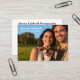 A photo of a smiling young couple with a little mixed breed dog makes a charming busines card for a family and pet photographer. Could also be used for a real estate agent, a mental health clinic, pet adoption agency, and more. The photo is a template object and may be replaced with your own.