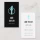 Cartes de visite verticaux uniques pour les instructeurs de guitare, les professeurs de musique, les cours de guitare, les musiciens ou les joueurs de guitare comédiens vocaux ou actrices, les artistes de voix off, les talents vocaux et les professionnels de l'enregistrement audio disposent d'une tête de guitare électrique en aqua brillant sur un arrière - plan noir, avec deux lignes de texte personnalisé en lettres blanches. Customisez l'arrière avec vos coordonnées complètes, affichées sous une illustration plus petite du titre correspondant. Que votre spécialité soit classique, acoustique, électrique ou basse, ces cartes de visite modernes et professionnels sont un moyen parfait d'obtenir des clients et de faire la marque de votre entreprise!