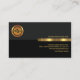 Au-dessus, le même thème de conception est utilisé. La couche supérieure a le logo or et le nom commercial. La colonne noire située en-dessous contient vos coordonnées et votre option de slogan pour faire connaître vos services.