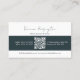Mettez en valeur votre marque avec sophistication en utilisant cette carte de visite professionnelle QR pour courtier immobilier de luxe, conçue avec une esthétique moderne et haut de gamme. Le devant présente un fond vert foncé avec un grand mot subtil "COURTIER" servant de toile de fond audacieuse mais raffinée - parfait pour créer de la profondeur et un intérêt visuel. La lettre "O" est remplacée par un espace photo circulaire pour afficher votre photo de profil. Un mot blanc plus petit "CONSEILLERS" est placé de manière artistique entre les espaces du mot de fond, ajoutant du contraste et mettant en évidence votre domaine d'expertise. Sous ce design en couches, un mot en écriture élégante fournit une touche personnelle et de marque qui transmet le professionnalisme et le style. Cette carte de visite polyvalente comprend un espace personnalisable pour votre photo, votre nom, votre titre, votre entreprise et vos coordonnées, ainsi qu'un code QR personnalisé au verso, ce qui facilite la mise en valeur de votre identité et de vos services. Idéale pour les courtiers immobiliers, les agents, les spécialistes de la propriété de luxe, les consultants en investissement immobilier et les équipes immobilières professionnelles, cette carte équilibre le design moderne avec une sensation sophistiquée et abordable. Entièrement personnalisable pour refléter l'identité de votre marque, elle garantit que votre carte laisse une impression durable sur les clients, les partenaires et les
