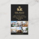 Voici le Carte de visite de grille de l'agent immobilier Monogram Realtor Mortgage Broker, qui présente du texte et des photos personnalisés, avec un code QR pour un accès facile.