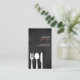 Illustration graphique de fourche, cuillère et couteau coulent du bord de ce carte de visite unique. Idéal pour les restaurateurs, les cuisiniers ou les amateurs de cuisine. © 1201AM DESIGNS