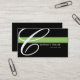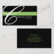 Un arrière - plan noir avec une rayure verte. Remplacez le grand "C" par la première lettre de votre nom de société pour un regard fait sur commande. Toute votre information de contact est sur le dos de la carte. La police et la taille de la police et la couleur peuvent être changées.