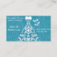 Un carte de visite élégant et élégant qui conviendra à un magasin de design Bridal Wear, à une entreprise de Couture nuptiale ou à un concepteur de robe de Mariage nuptiale. Cette carte élégante présente un design d'une belle robe mariage contre un arrière - plan bleu oeuf de canard. Cette carte est entièrement personnalisable pour inclure vos propres détails personnels avec l'adresse du magasin et les détails de l'entreprise.
