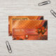 Une carte de visite présentant un design créatif dans le style scrapbooking et des oranges chaudes. Parfait pour toute personne dans l'entreprise artisanale faite main ou une couturière, entreprise de patchwork, couture ou autre activité créative.