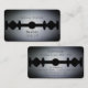 Image métallique brillante du rasoir. La carte comme une lame de rasoir tranchée drôle et couverture professionnelle. Boutique de coiffure et couverture de coiffeur. Couverture métallique brillante avec couleur de arrière - plan réglable. Moderne et professionnel.