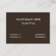 Carte de visite, taille : États-Unis : 8.9 cm x 5.1 cm, papier : Standard Semi-brillant, coins : Carré